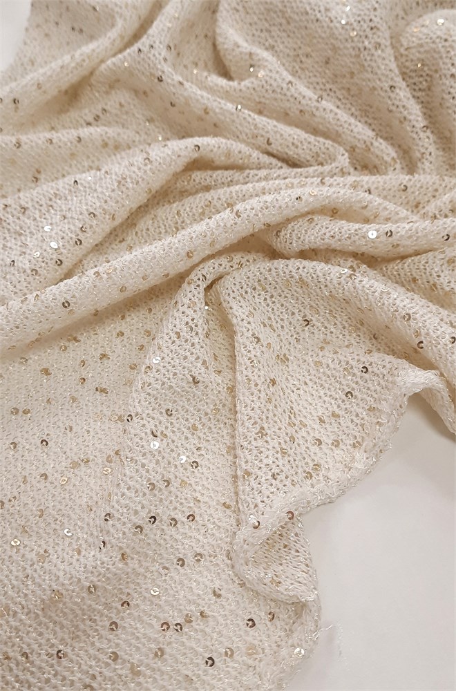 Вязаное полотно с пайетками ЭКРЮ