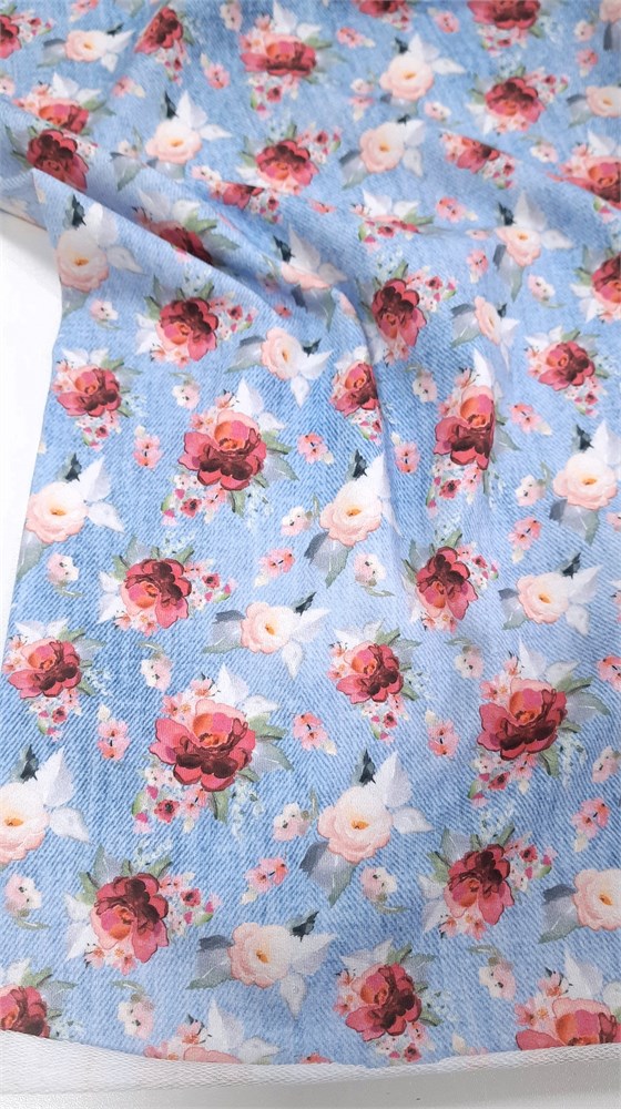 Футер двунитка ЦВЕТОЧКИ НА ДЖИНСЕ