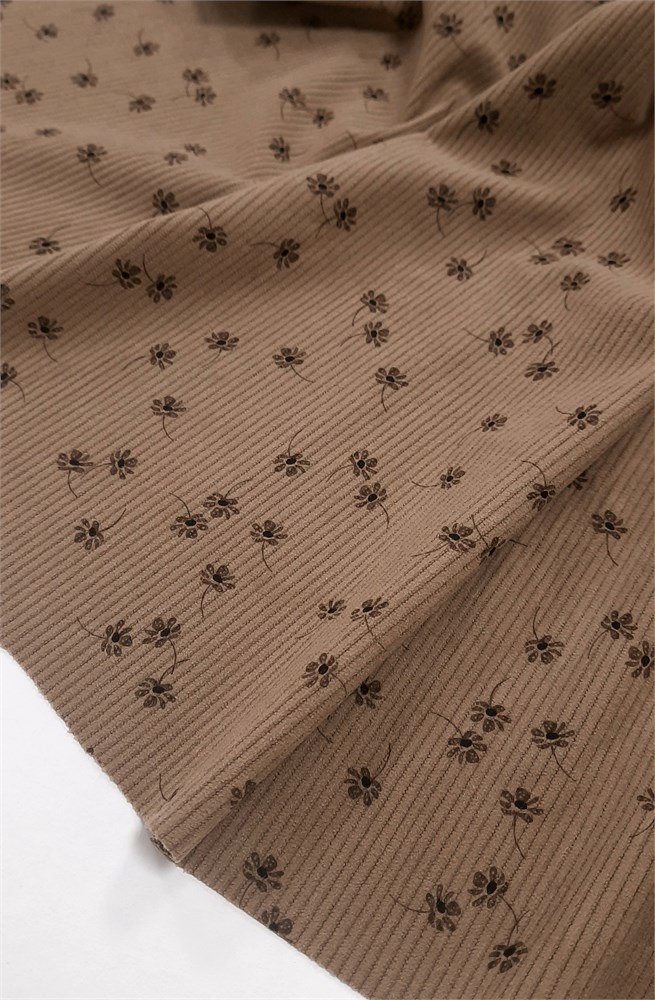 Вельвет бежевый ЦВЕТОЧКИ
